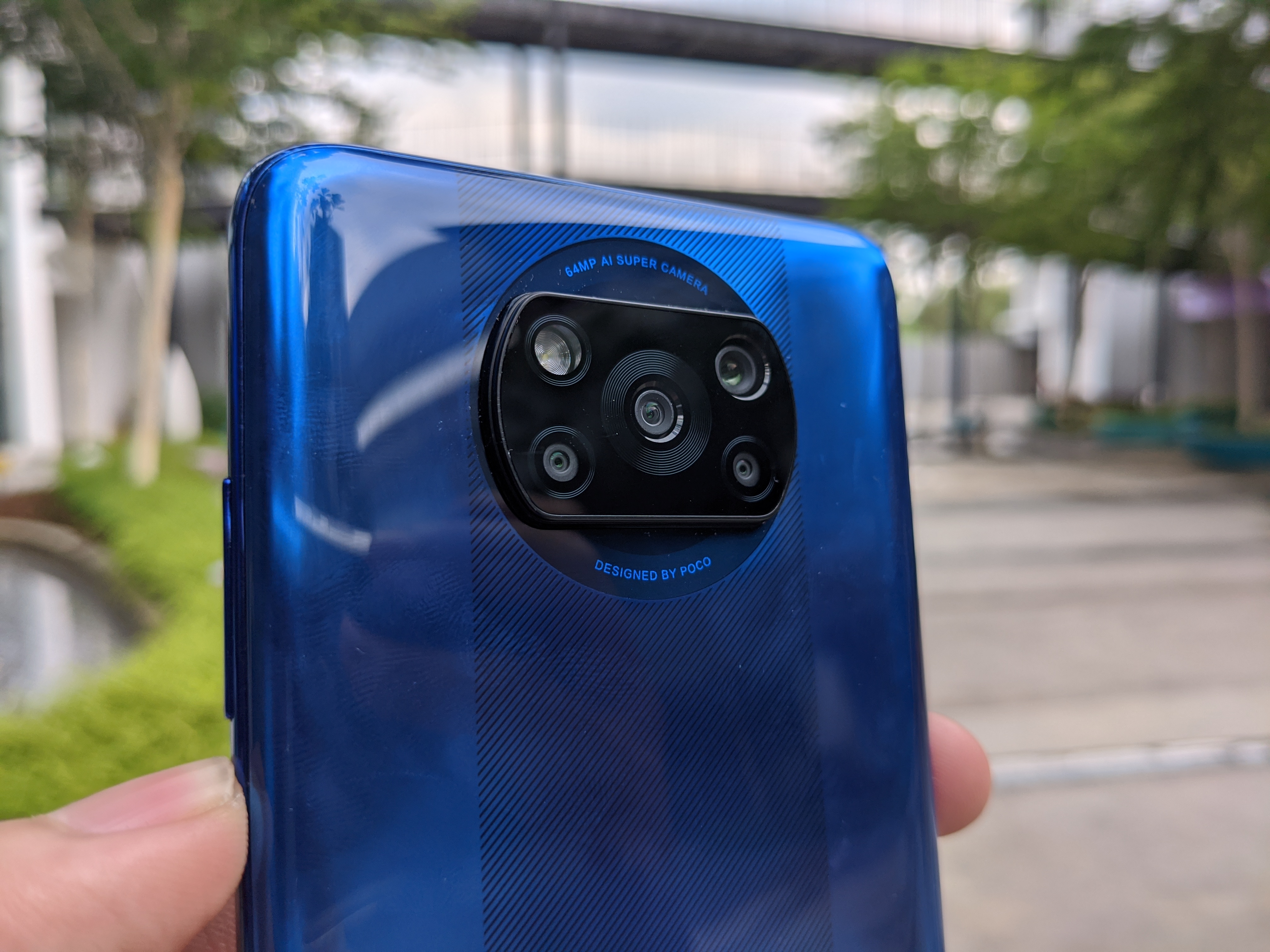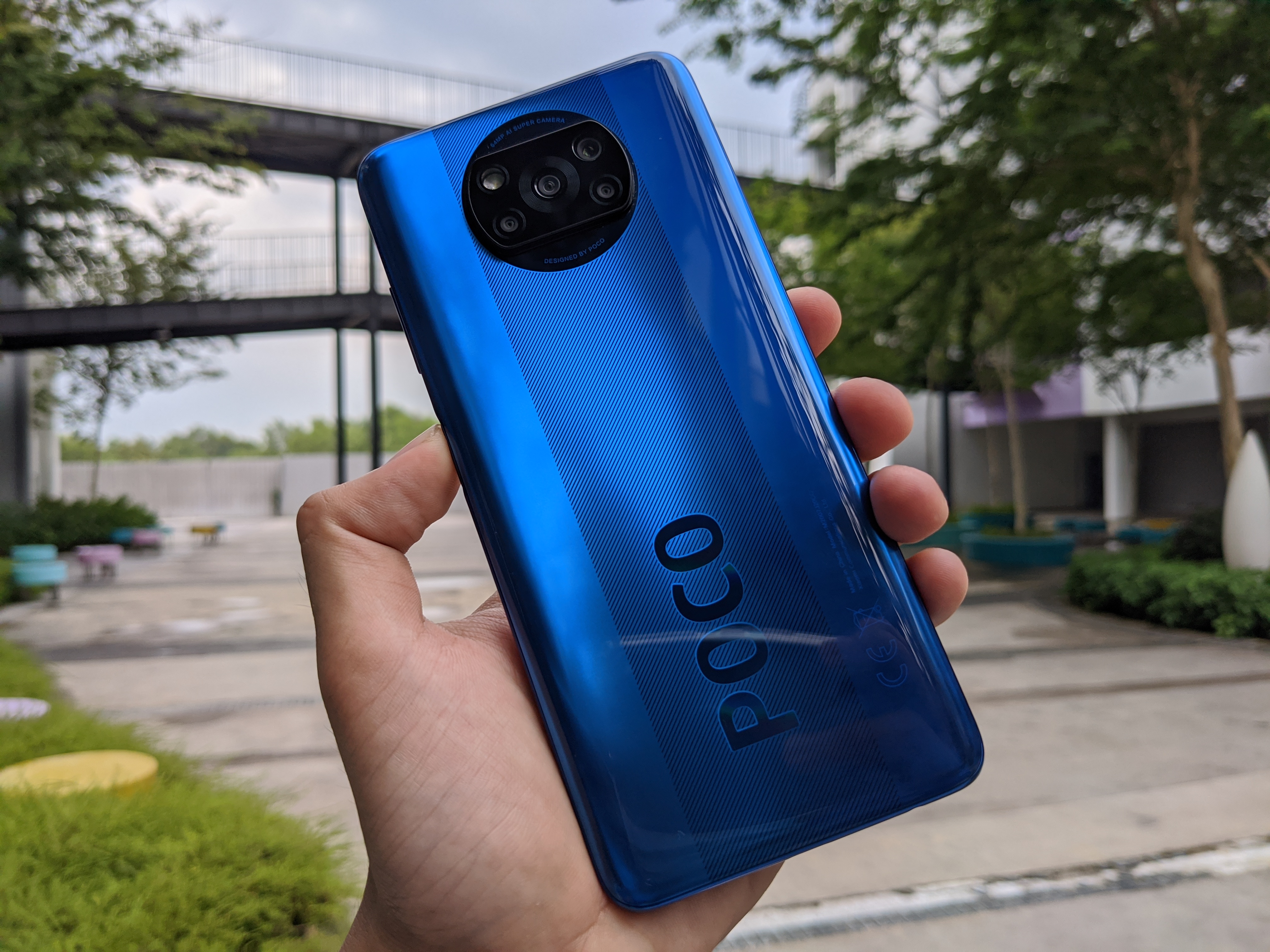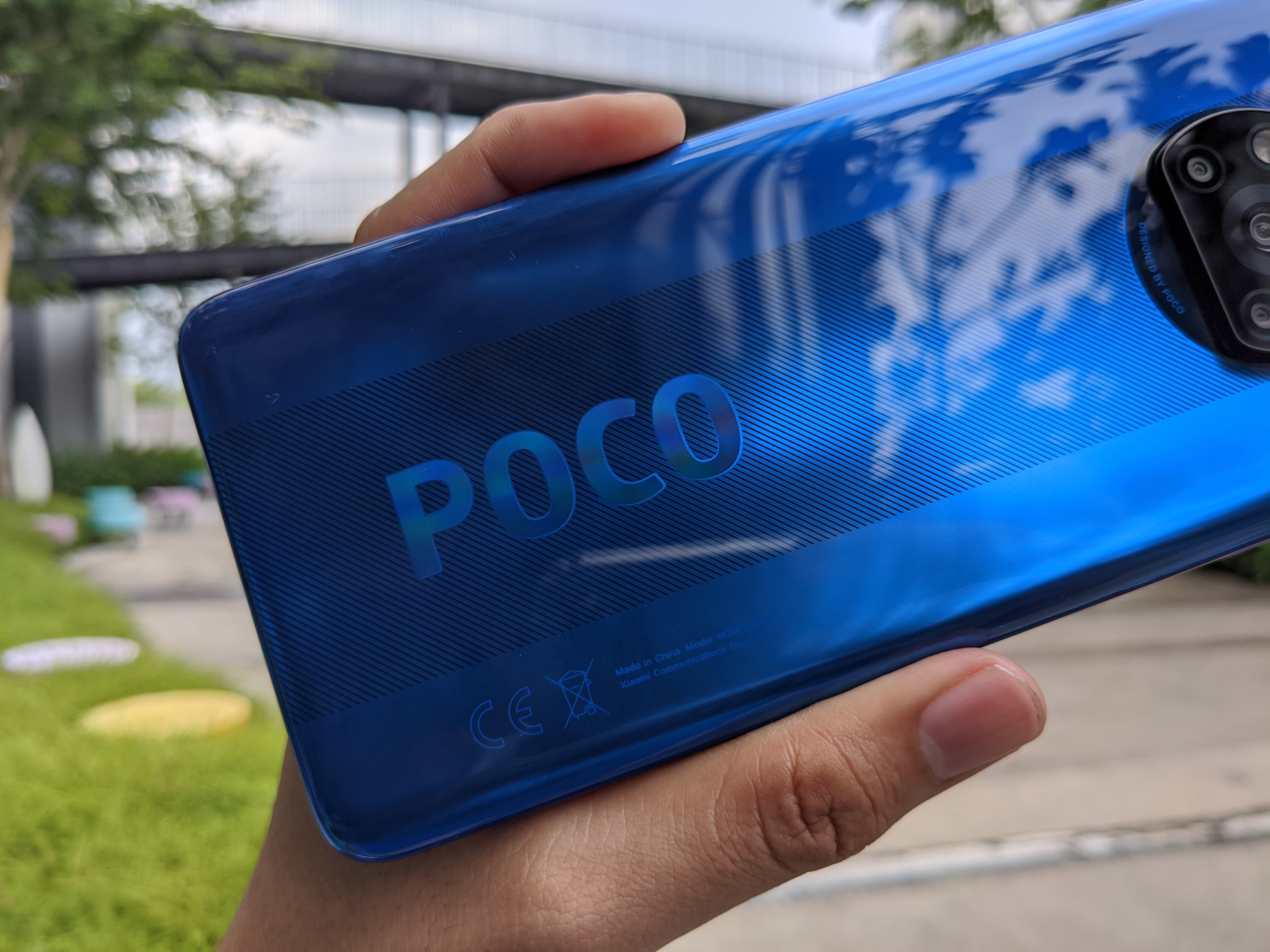Pertamanya, sekali pandang sahaja anda akan melihat tulisan “POCO” yang besar berada pada bahagian bawah belakang. Tulisan ini mempunyai pantulan pelangi yang menonjolkan lagi tulisan yang sudah sedia menonjol itu.