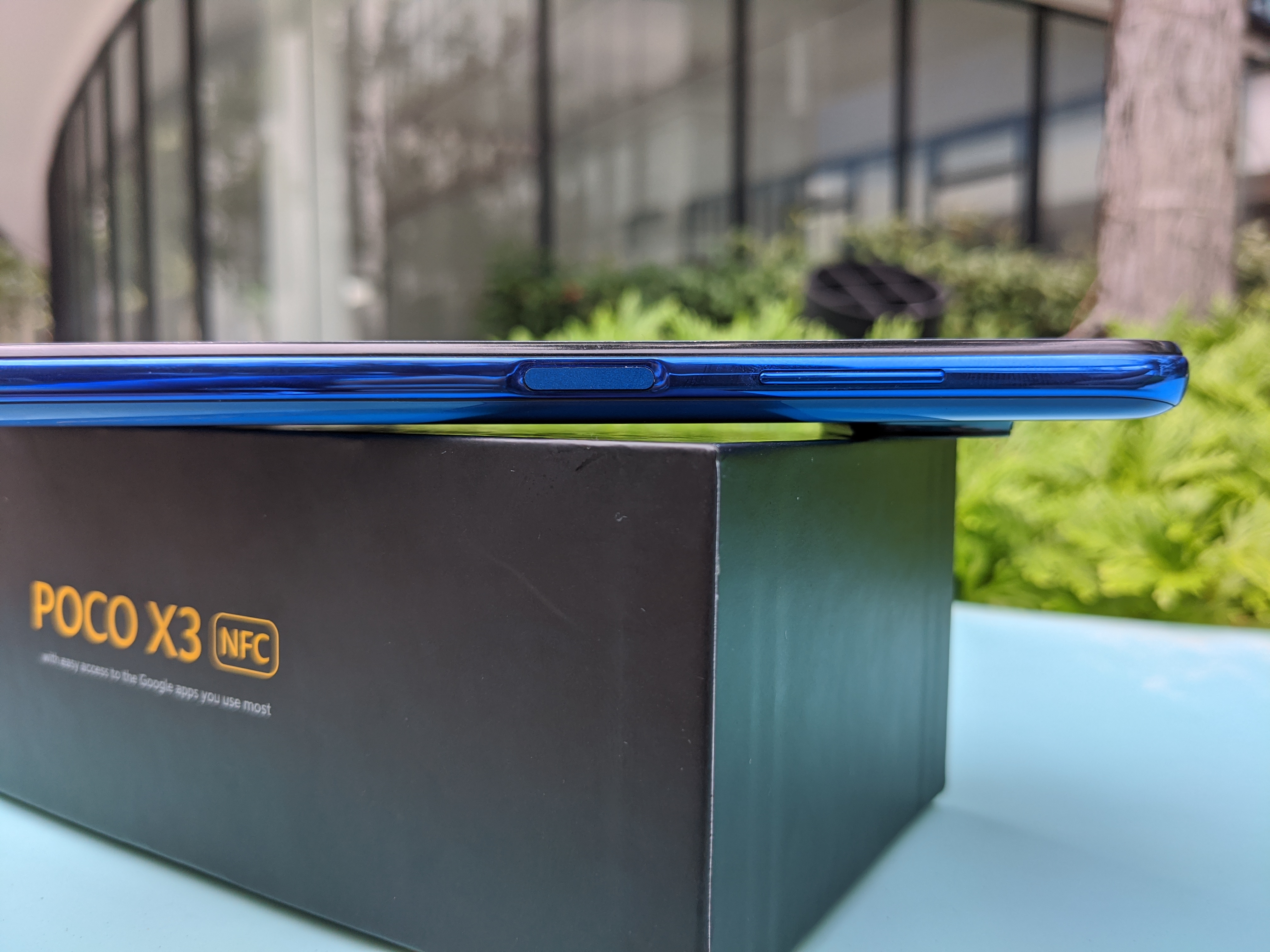 Bahagian kanan memperlihatkan pengimbas cap jari yang direka leper yang juga berfungsi sebagai butang kuasa. Tiada pengimbas cap jari pada panel paparan memberikan jawapan kedua di mana POCO menjimatkan kos untuk menghasilkan telefon ini. Di atasnya pula terdapat butang kawalan.
