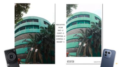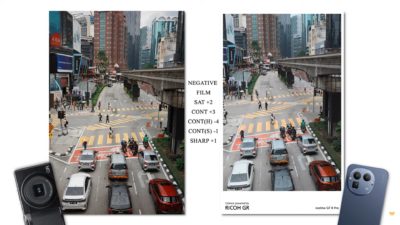 Menggunakan preset atau resipi yang sama, kedua gambar ini memperlihatkan warna dan kualiti yang hampir sama. Memang mustahil untuk mendapatkan kualiti 100% sama dengan Ricoh disebabkan oleh jenis dan saiz sensor yang berbeza. Elemen white balance juga menjadi salah satu faktor yang menyebabkan perbezaan warna pada hasil gambar kedua peranti ini.