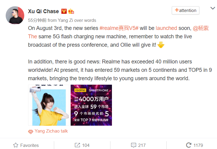 Pada minggu lalu, realme telah mengesahkan telefon pintar pertama dalam barisan siri V iaitu V5 akan diperkenal pada awal Ogos nanti. Kini, realme mengumumkan pelancaran realme V5 akan diadakan pada 3 Ogos ini.