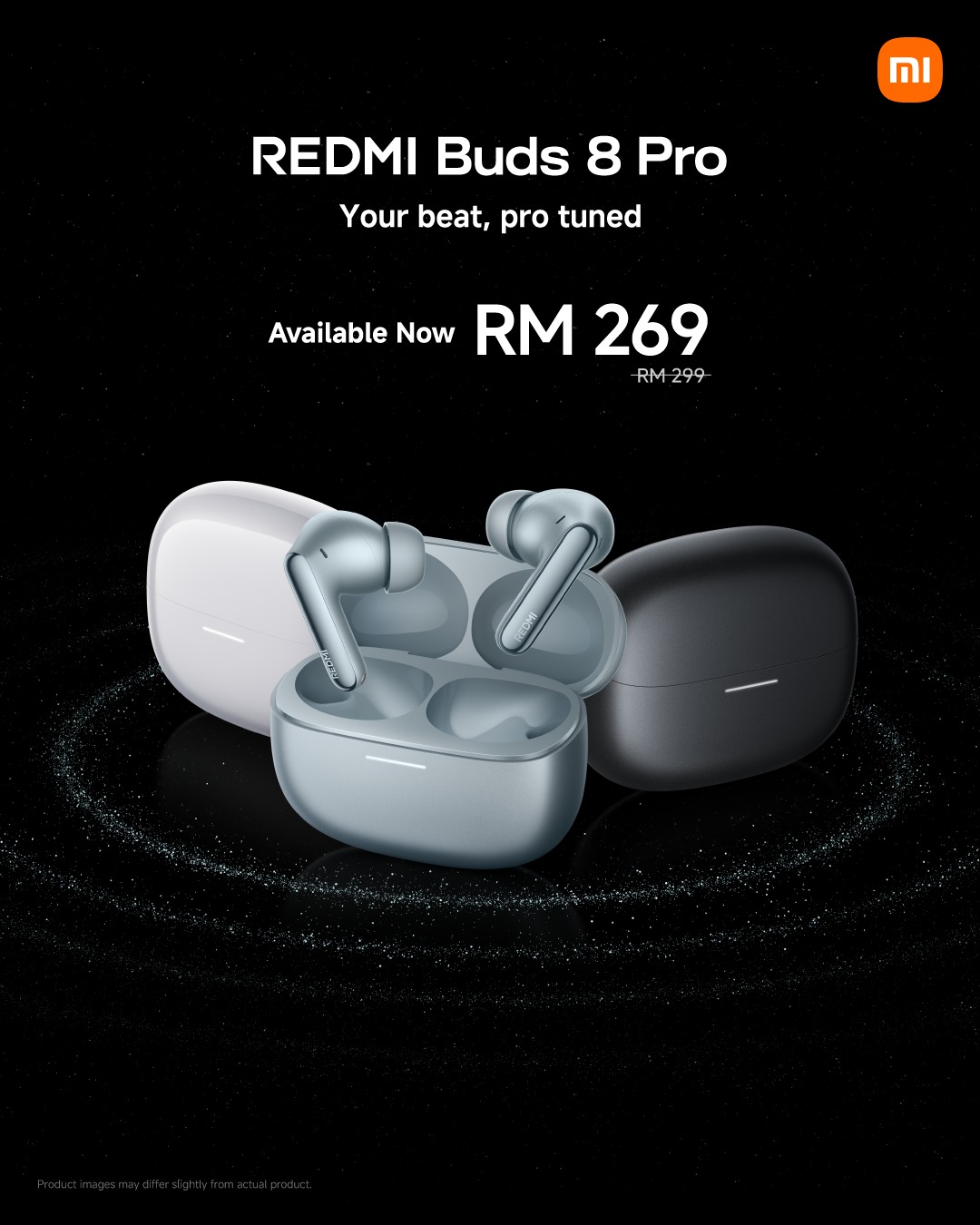 REDMI Buds 8 Pro yang tersedia dalam 3 pilihan warna menarik, Glacier Blue, Obsidian Black dan Cloud White dijual pada harga RM269 yang boleh dibeli dari stor rasmi: