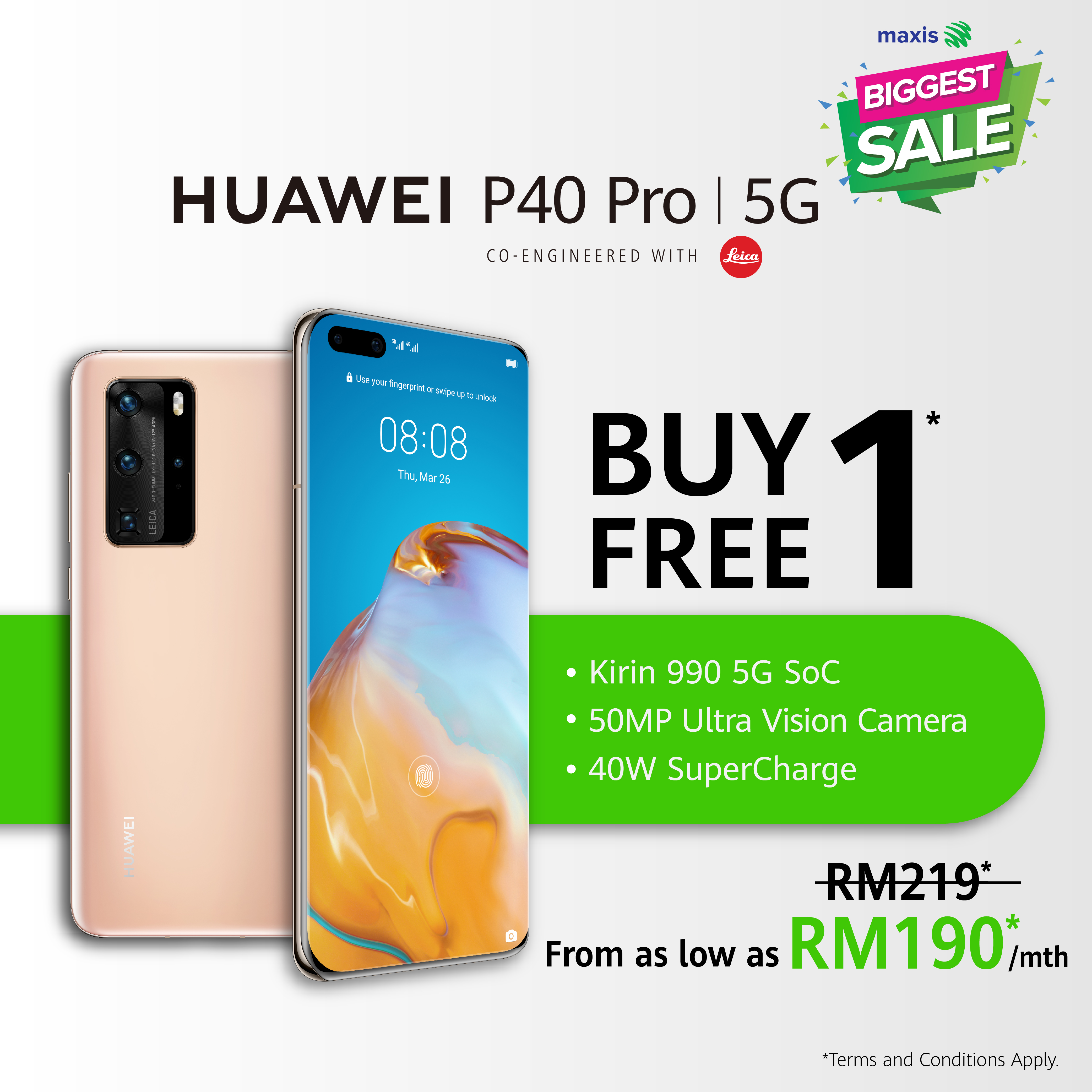 Berita baik buat anda yang sedang berkira-kira untuk memiliki siri Huawei P40 ini, Maxis kini telah mengadakan promosi “Beli 1, Percuma 1”. Penawaran ini dibuat melalui pelan pascabayar Maxis Zerolution dimana anda boleh mendapatkan dua peranti pada harga bulanan RM130 (Huawei P40) dan RM190 (Huawei P40 Pro).