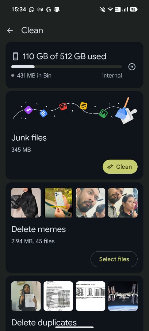 - Di sini anda akan dapat lihat pilihan fail yang boleh dipadam termasuklah Junk files, Delete memes, Delete duplicates dan banyak lagi.