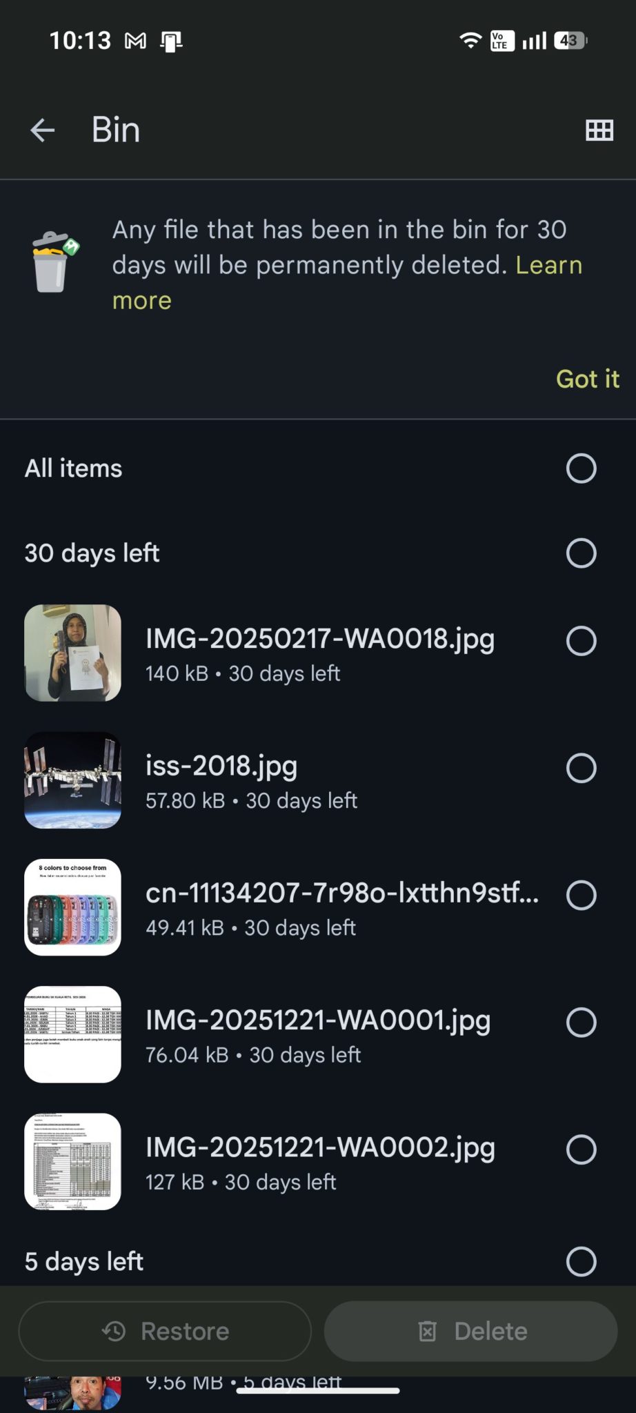 - Kemudian di bahagian Bin, tandakan pada pilihan All items dan ketik butang Delete untuk memadam semua kandungan dalam Bin tersebut.