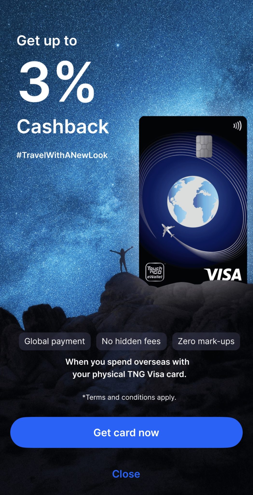 Kad Visa Travel ini merupakan versi naik taraf daripada kad Visa TNG eWallet sedia ada. Ia masih menggunakan baki yang sama dalam akaun eWallet pengguna, tetapi kini hadir dengan ganjaran tambahan dan kelebihan khas untuk transaksi luar negara.