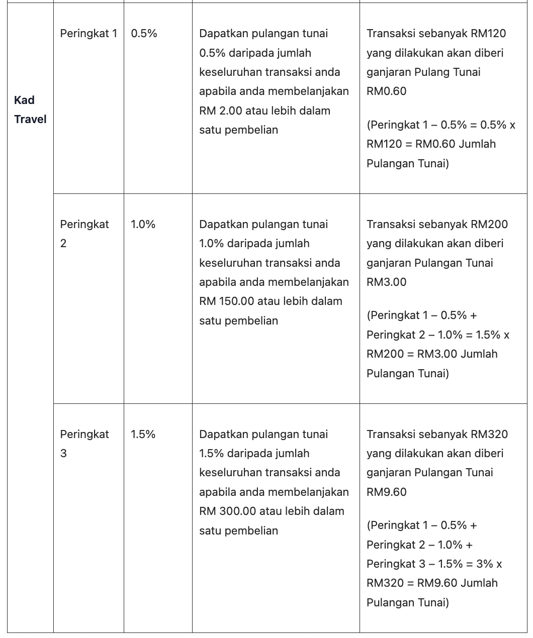 Melalui kempen ini, pengguna yang berbelanja secara fizikal di luar negara menggunakan kad Visa Travel akan menikmati sehingga 3% pulangan tunai berdasarkan jumlah perbelanjaan.