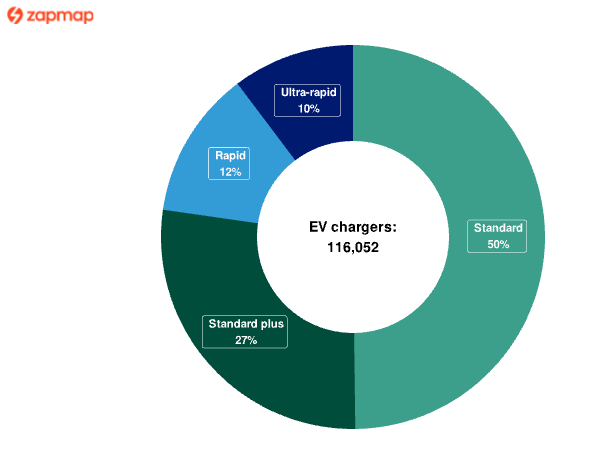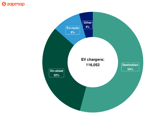 Data rasmi sehingga 1 Januari 2026 menunjukkan terdapat 116,052 pengecas EV awam di UK, berbanding anggaran 60,802 stesen minyak konvensional. Analisis DfT menyimpulkan bahawa terdapat “jauh lebih” pengecas EV berbanding stesen minyak, iaitu hampir dua kali ganda lebih banyak.