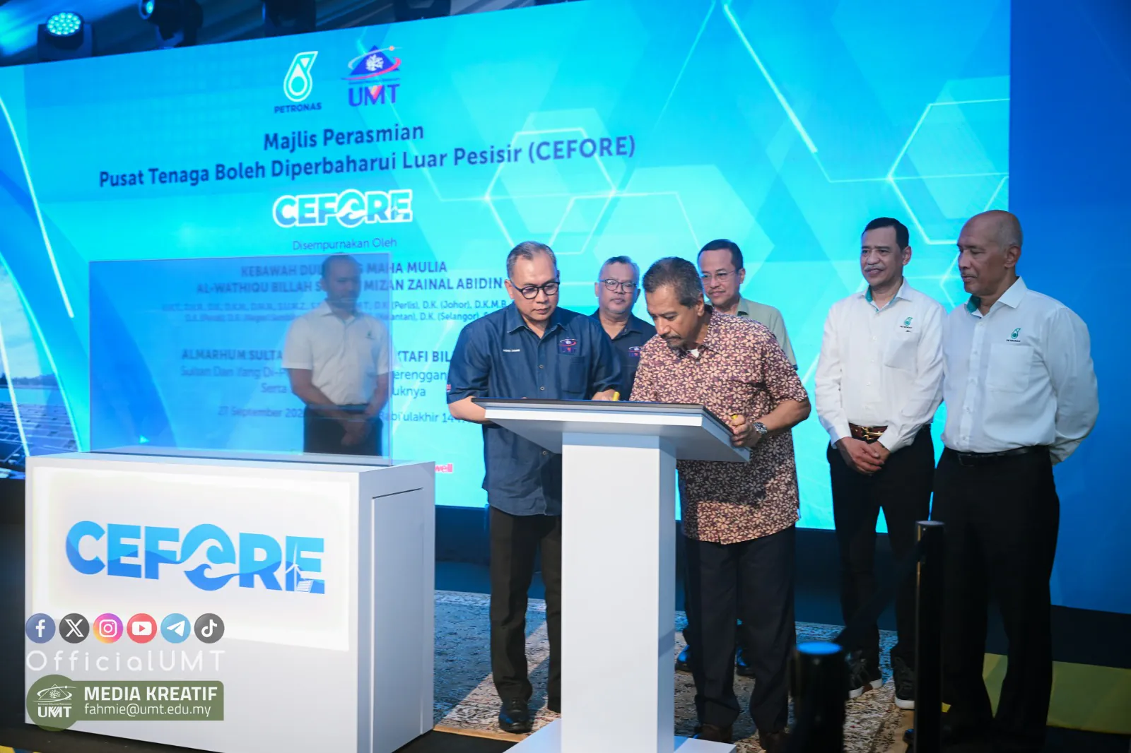 Universiti Malaysia Terengganu (UMT) melancarkan Pusat Penyelidikan Inovasi Tenaga Boleh Diperbaharui Luar Pesisir (CEFORE), hasil kerjasama strategik bersama PETRONAS.