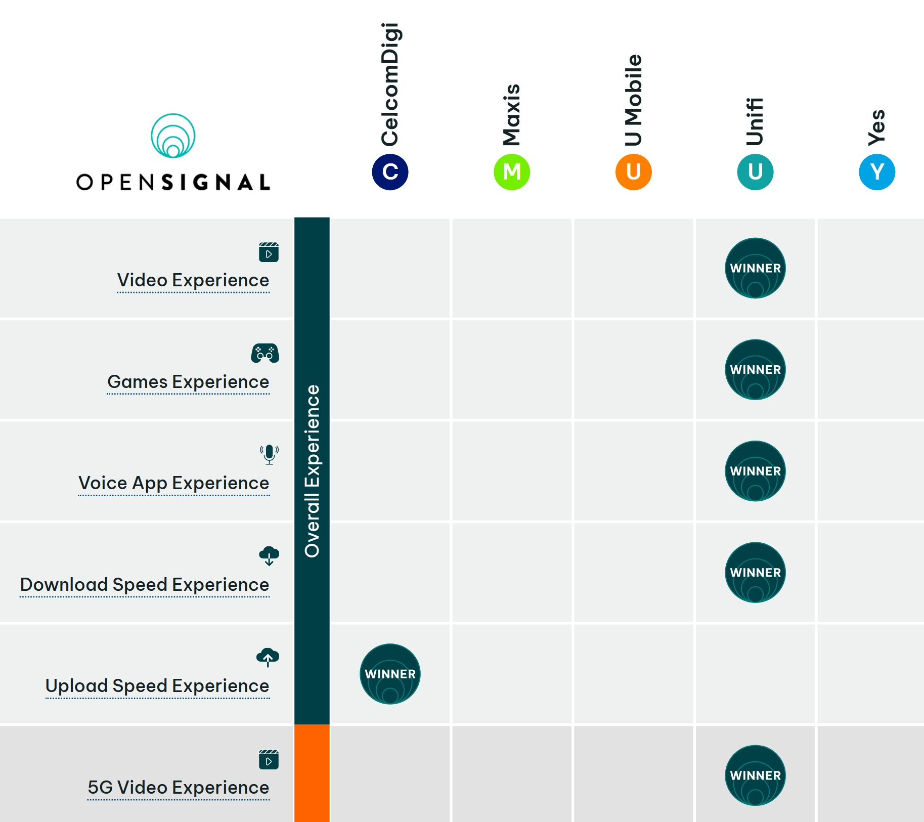 Opensignal dalam laporannya mendapati, setiap syarikat ini menonjol dalam kategori berbeza yang mencerminkan strategi dan kekuatan rangkaian masing-masing.