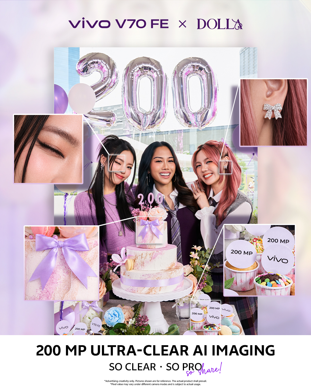 Bagi mengukuhkan lagi imej stailo peranti ini, vivo Malaysia turut mengumumkan kolaborasi bersama kumpulan gadis popular tempatan, DOLLA, sebagai official vivo V70 FE Friend.