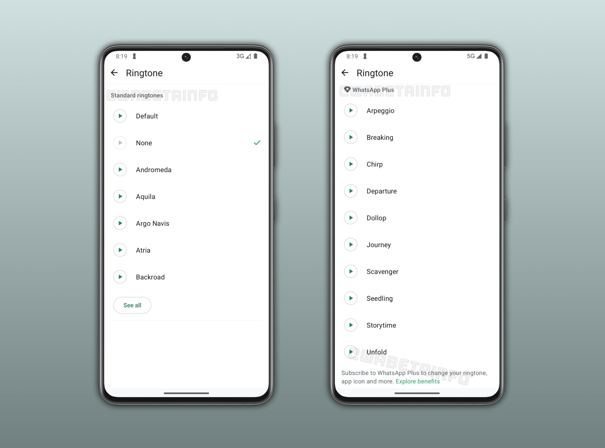 Selain itu, WhatsApp Plus juga dijangka menawarkan beberapa nada dering eksklusif yang hanya tersedia untuk pelanggan berbayar.