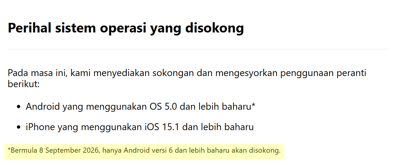 Ini bermakna, pengguna Android 5.0 dan 5.1 tidak lagi boleh menggunakan aplikasi tersebut selepas tarikh berkenaan.