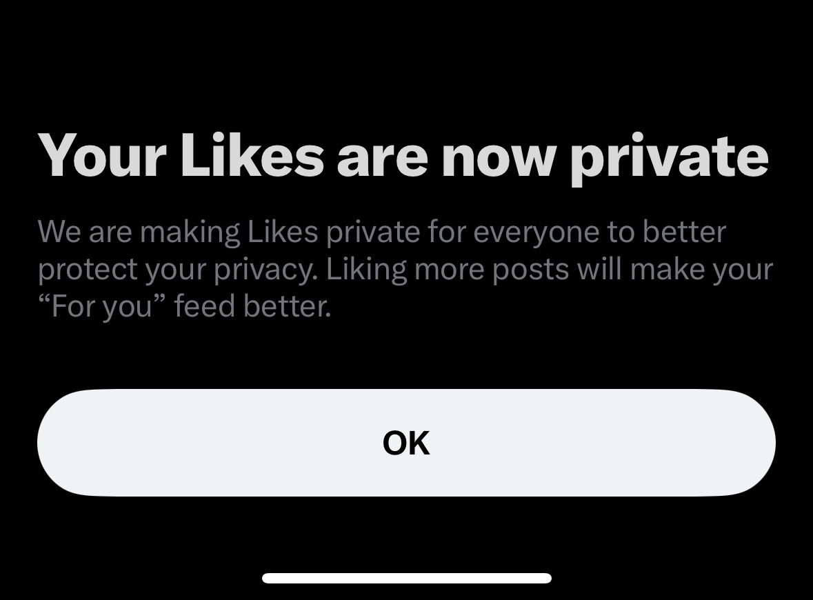 Menurut X, pengguna masih boleh melihat post atau siaran yang mereka sendiri tandakannya sebagai suka. Selain itu, kiraan tanda suka dan metrik lain untuk siaran sendiri juga masih akan dipaparkan di bawah notifikasi.